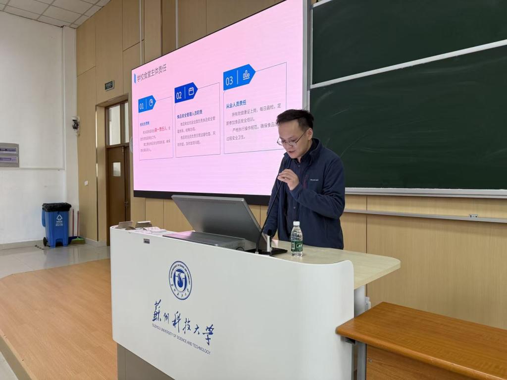 培训以学校落实食品安全主体责任的相关规定为核心,围绕法律法规与主体责任、组织管理、场所布局与设备设施、过程控制、应急处置、自查与监督管理六个方面展开。刘立锋重点强调了食堂卫生防护的关键细节,包括防鼠设施的重要性、化学品库选址等,用“排水篦子缺失导致老鼠进入”、“未及时除霜引发交叉感染”等真实事例敲响警钟。最后,他强调全体员工严把工作中每个细节,将各项要求落到实处,最大限度地防范和降低安全事故发生。