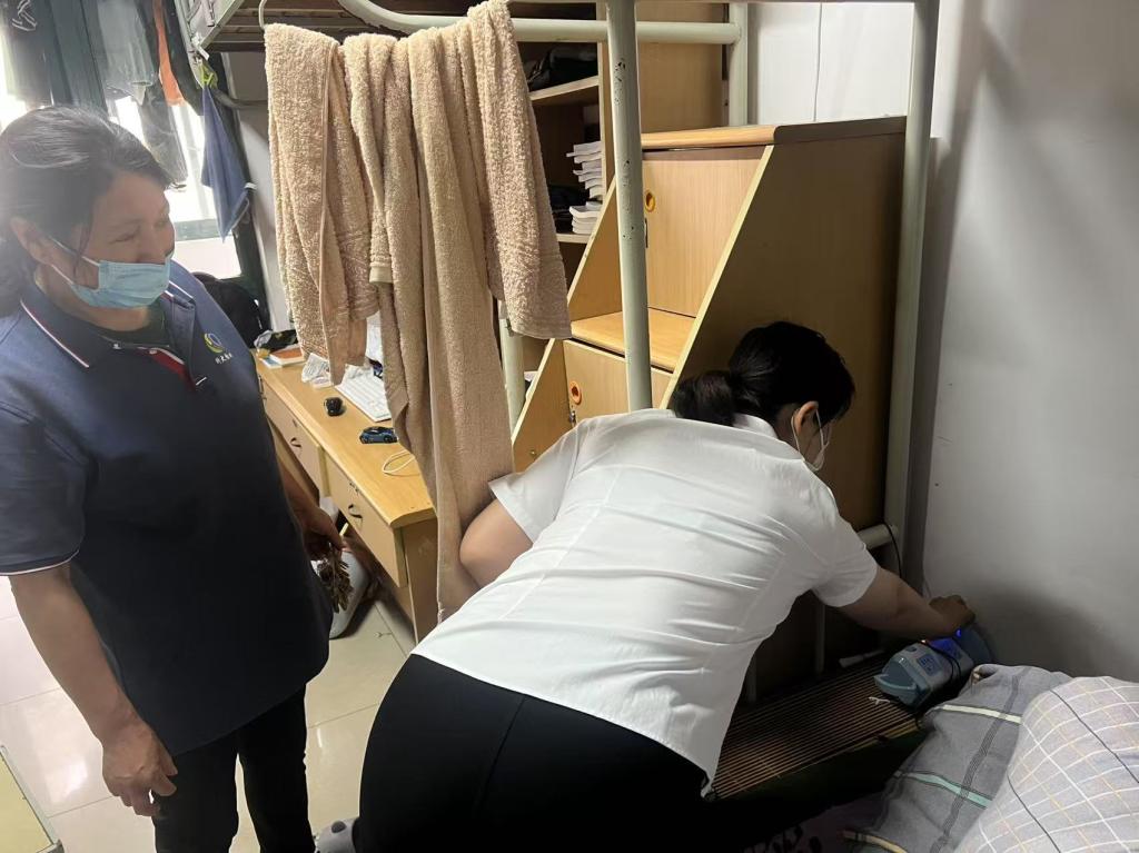 安全巡查“全时段”,隐患排查“零疏漏”中心员工深入学生公寓、教学楼、配电室等重点区域,展开“地毯式”安全巡检。他们细致排查消防设施是否完好、水电线路有无老化破损、设施设备运行是否正常。尤其加大寝室内检查力度,重点排查是否存在违章电器使用情况,以及阳台是否堆积易燃物品等潜在危险源,专人专项对离校学生寝室进行重点检查,帮助学生断水断电。对于排查出的问题,全部做好详细记录,并及时上报相关部门,确保校园安全无“死角”,真正做到防患于未然。