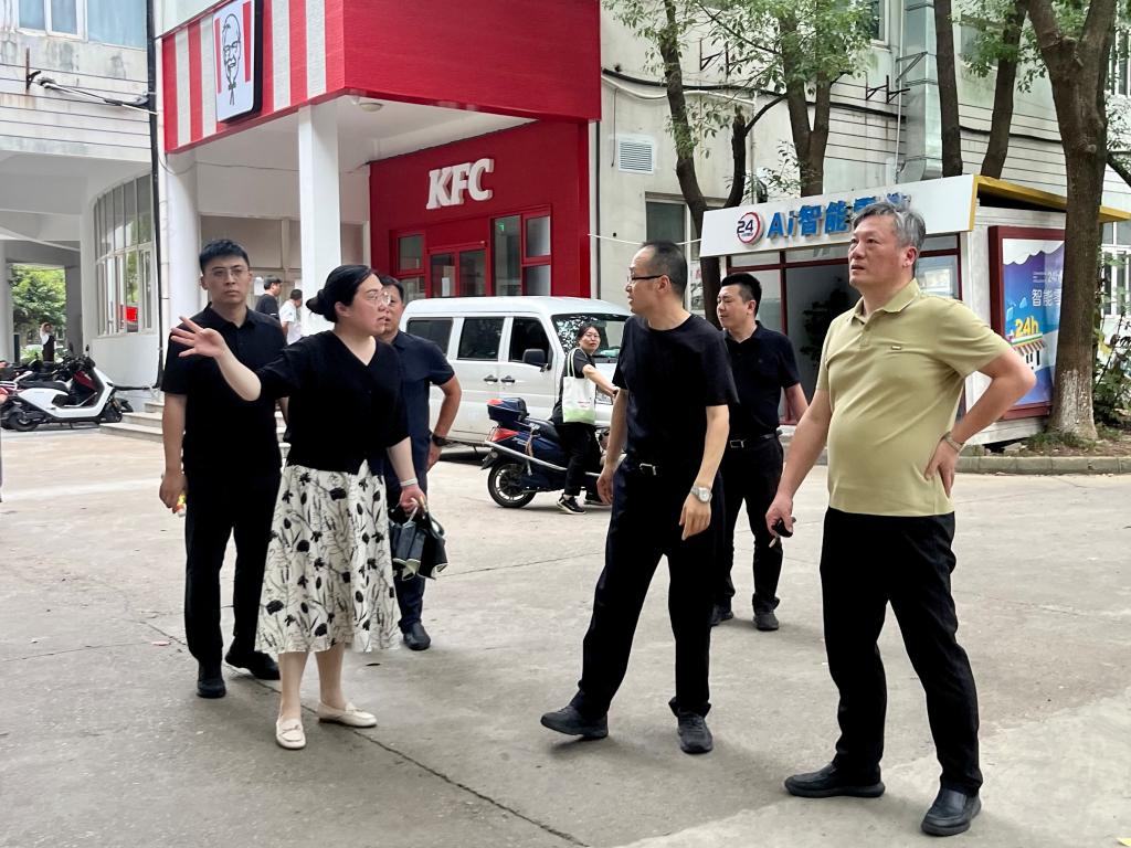 何湘江一行先后来到校园警务室、校内河道护坡、图书馆消控室、东区10组团学生公寓、江枫食堂、教学楼改造项目、五松园超市等地实地检查,详细查看设施运行及管理情况,对检查中发现的安全隐患,现场提出整改要求,明确责任部门与时限。